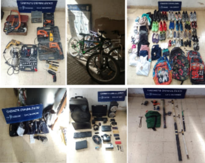 Asimismo, se procedió al secuestro de múltiples herramientas de mano eléctricas y a explosión, elementos de informática, prendas de vestir y zapatería sin uso, mochilas escolares, equipos de audio para automóviles, una garrafa de 10 kg, aberturas, cañas de pescar, electrodomésticos varios, bicicletas, herramientas de peluquería y motopartes. La UFi 11 San Pedro ha intervenido en el caso y dispuesto que los imputados sean puestos a disposición de la justicia.»