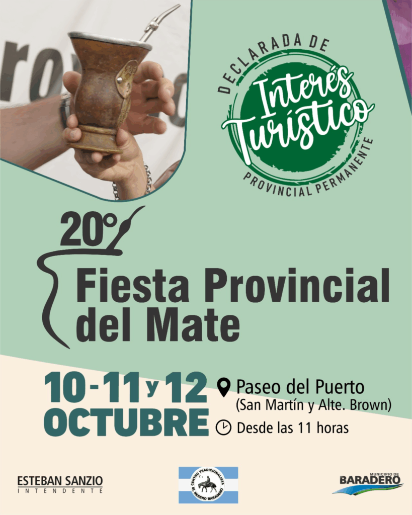 El Municipio de Baradero, a través de la Secretaría de Cultura, Educación, Comunicación y Deporte, invita a la comunidad y a visitantes de toda la región a disfrutar de la vigésima edición de la Fiesta Provincial del Mate, un evento declarado de interés turístico provincial permanente que se ha convertido en un verdadero símbolo de identidad y encuentro.