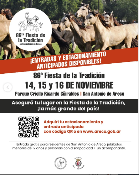 Adquirí tus entradas anticipadas en el siguiente enlace. Entradas parque criollo o podes abonar en el lugar a través de débito, QR, MP, Cuenta DNI y efectivo.