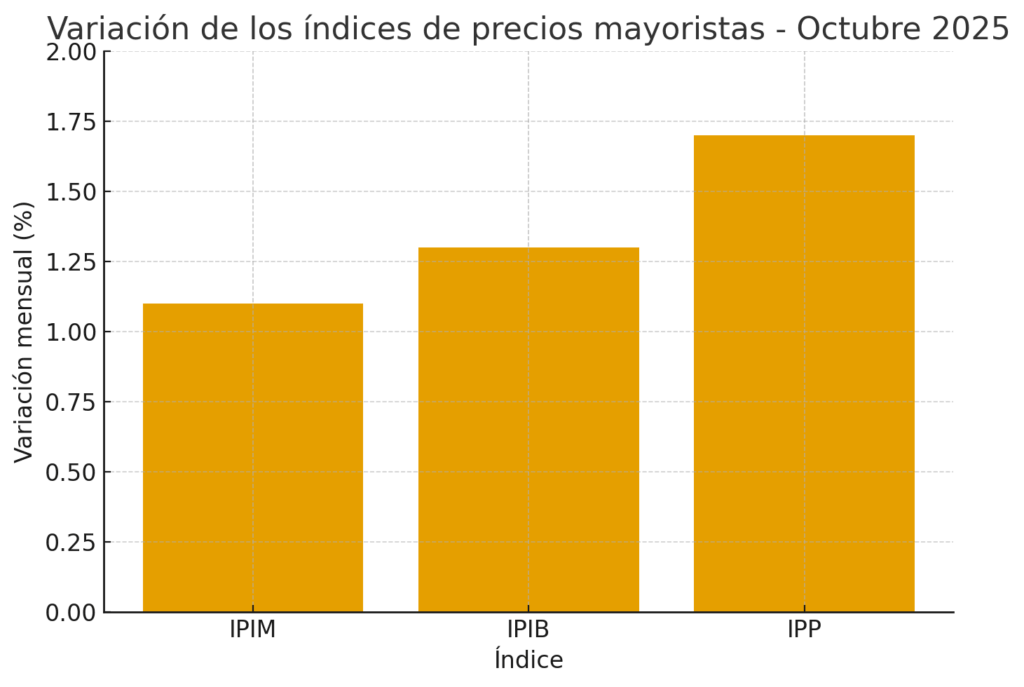 Variación mensual de los principales índices de precios mayoristas correspondiente a octubre de 2025